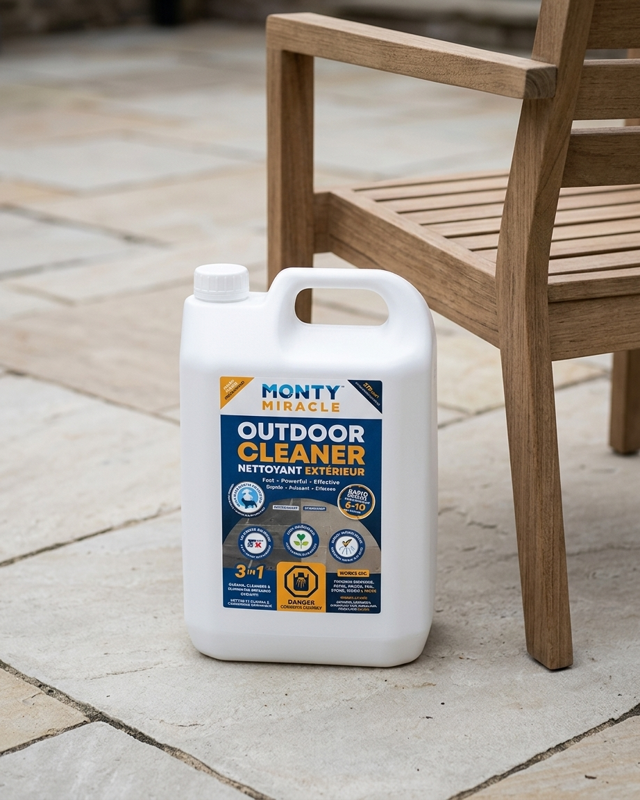 Monty Miracle, the internationally acclaimed outdoor cleaner, is your ultimate solution for restoring outdoor surfaces. Quick, effective, and hassle-free, it’s designed to bring your driveways, patios, and walls back to life with ease.